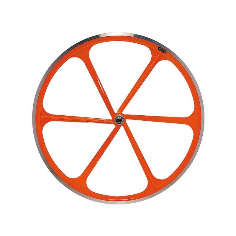 Couple Fixed wheels 6-spoke aluminum orange Fluo