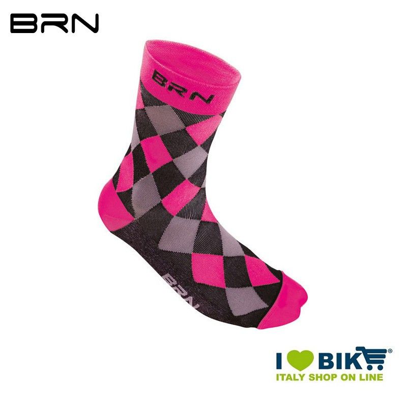 Calzino ciclismo BRN a scacchi fuxia fluo / nero