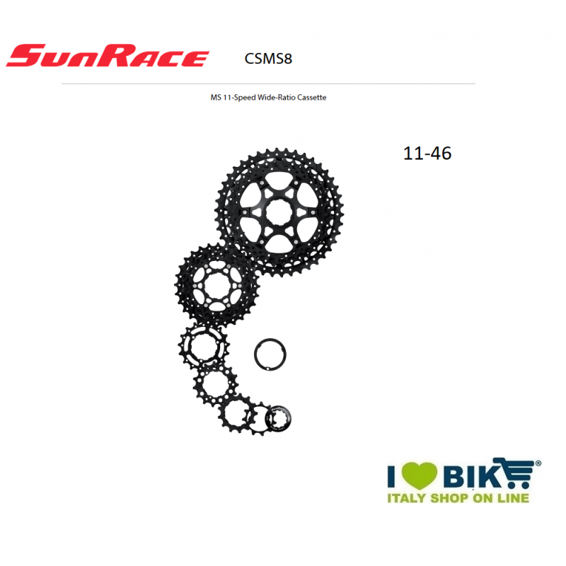Pacco pignoni 11 V 11-46 Sunrace Nero MS8